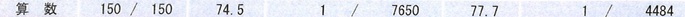 算数 150点/150点満点 偏差値74.5 1位/7,650人 平均点77.7点 男女別1位/4,484人
